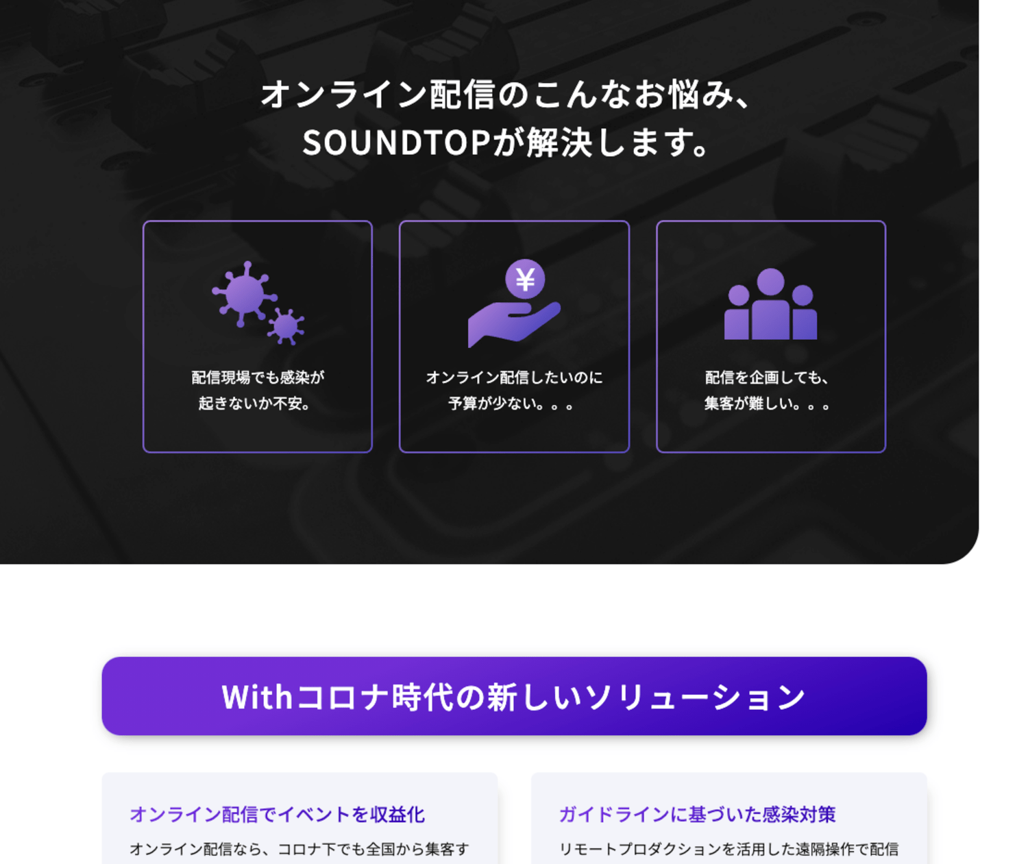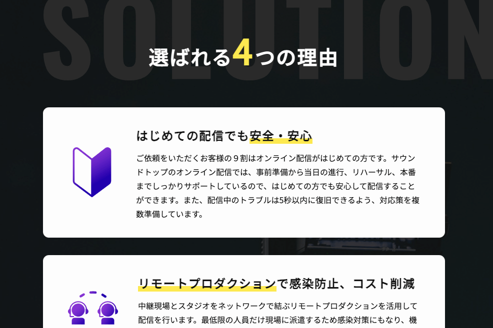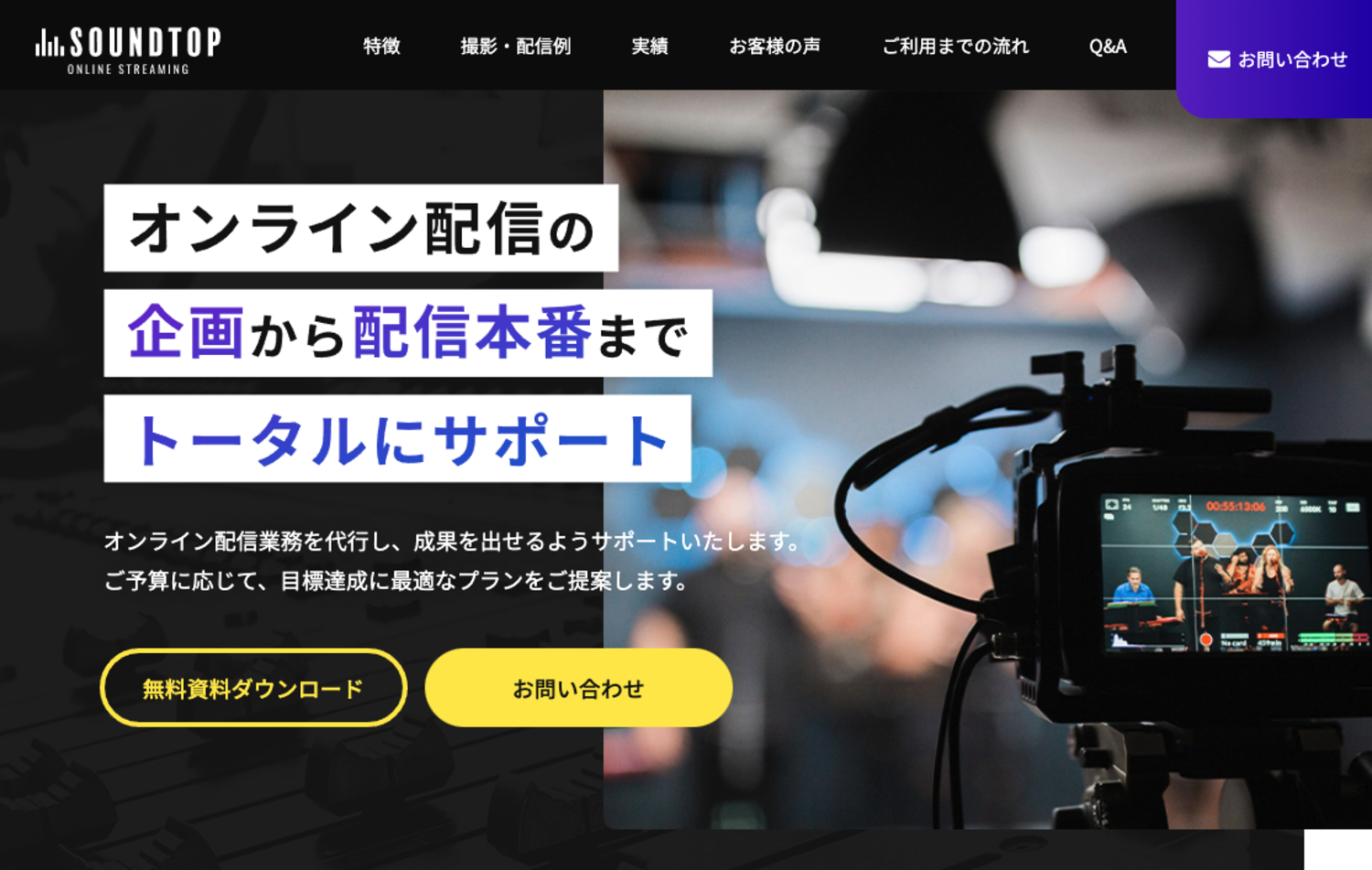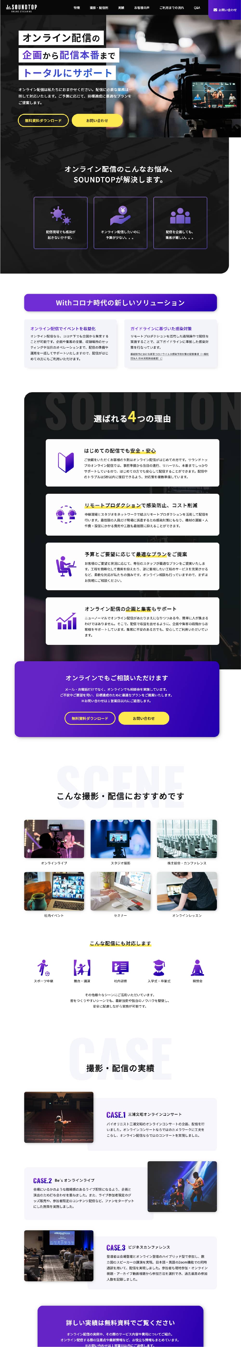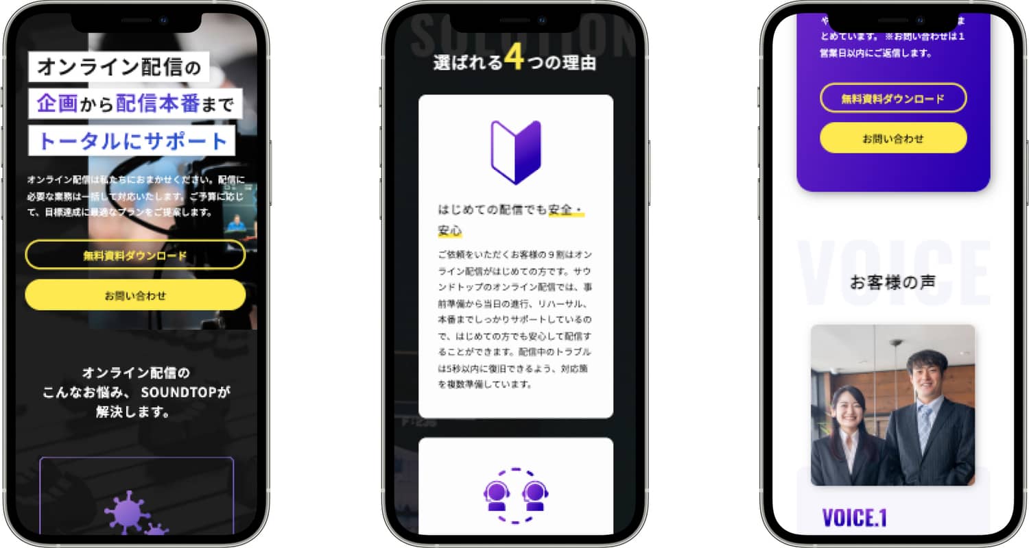株式会社サウンドトップが提供する、オンライン配信サービスのランディングページを制作しました。